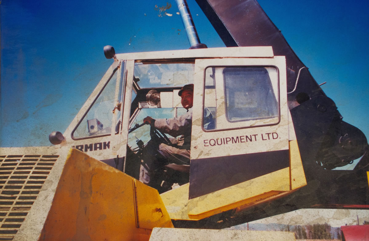 INSET PHOTO: 1972 BOB MOHR DELIVERING A CRUSHING PLANT TO ACE GINTER OF PTARMIGAN GRAVEL LARGE PHOTO: 1995 BOB MOHR DELIVERING ANOTHER CRUSHING PLANT TO ACE GINTER OF PTARMIGAN GRAVEL